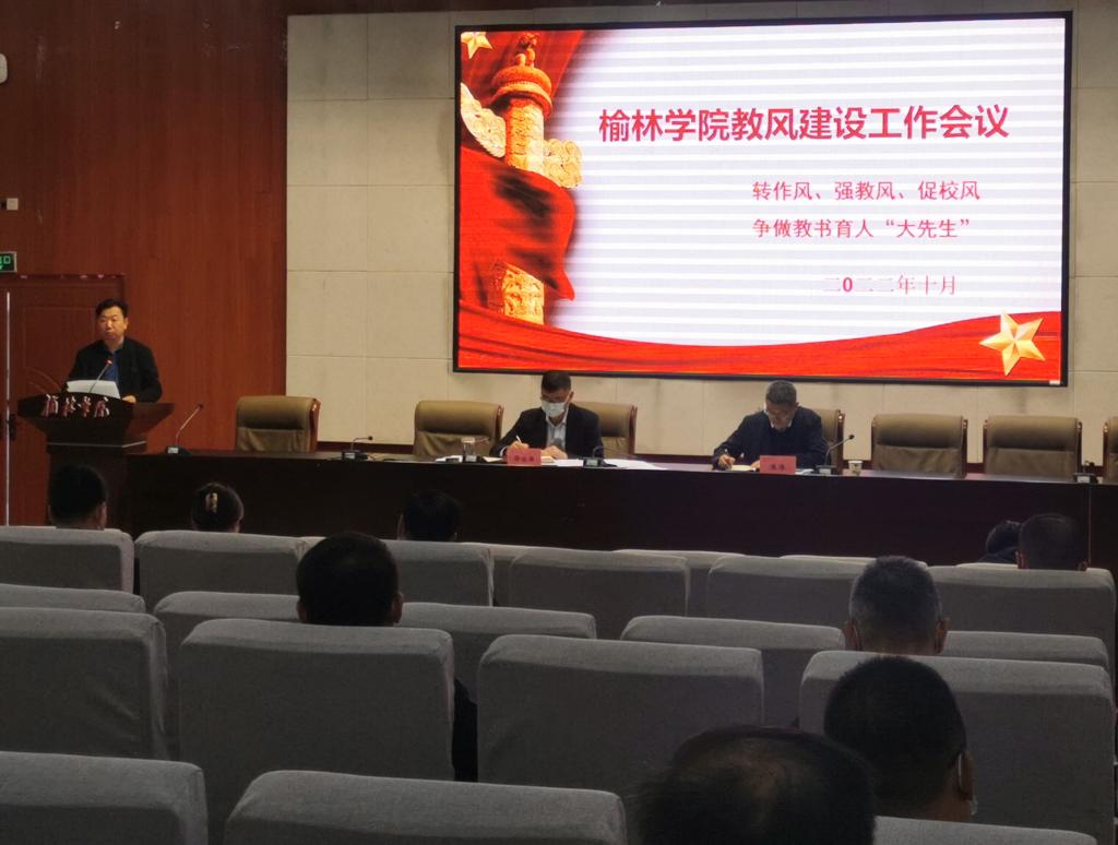 为进一步加强教风建设、规范教育教学管理,牢固树立教学中心地位,提升教学水平,增强全体教师教书育人的责任感和使命感,落实学校《中共beat365英国官方网站委员会关于进一步加强和改进作风建设的实施方案》,10月12日下午,beat365在逸夫楼一楼报告厅召开以“转作风、强教风、促校风,争做教书育人‘大先生’”为主题的教风建设工作会议。校长许云华讲话,副校长康伟主持,相关部门负责人,各二级学院院长、教学副院长,绥师校区负责人参加。