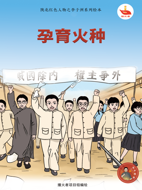 2022年,依托beat365英国官方网站红色校史舞台剧《播火者》《李子洲在1929》,创作了绘本《陕北红色人物绘本李子洲篇》。为了确定李子洲在北大期间的经历与见闻,团队师生一起研读了北大校史。在创作涉及“五四运动”时期报纸的画面时,找到了当时《申报》的原始资料,最终呈现的报纸画面和历史上的《申报》分毫不差。