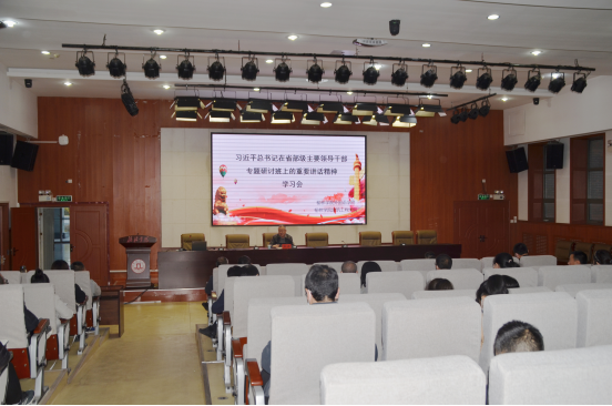 马克思主义学院马宇飞副教授作了题为《高举伟大旗帜 谱写崭新篇章—深入学习领会习近平总书记在省部级主要领导干部专题研讨班上的重要讲话精神》的报告。
