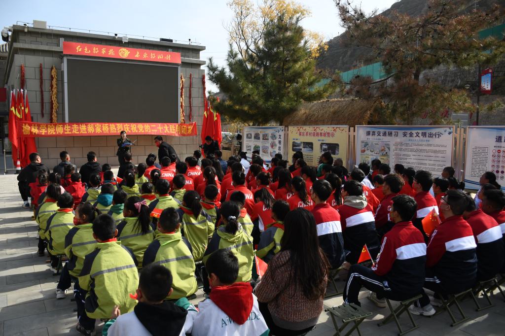 活动期间,师生们认真聆听了习仲勋同志在郝家桥工作和生活的故事,深入了解了郝家桥村从“陕甘宁边区‘农村楷模’”到“全国脱贫攻坚楷模”的发展历程,感受红色岁月,学习奋斗精神。之后,师生们向郝家桥小学及敬老院捐赠了学习和生活用品,并与郝家桥村民及小学生进行了陕北大秧歌、中华鞭陀互动交流,现场气氛喜庆热烈。