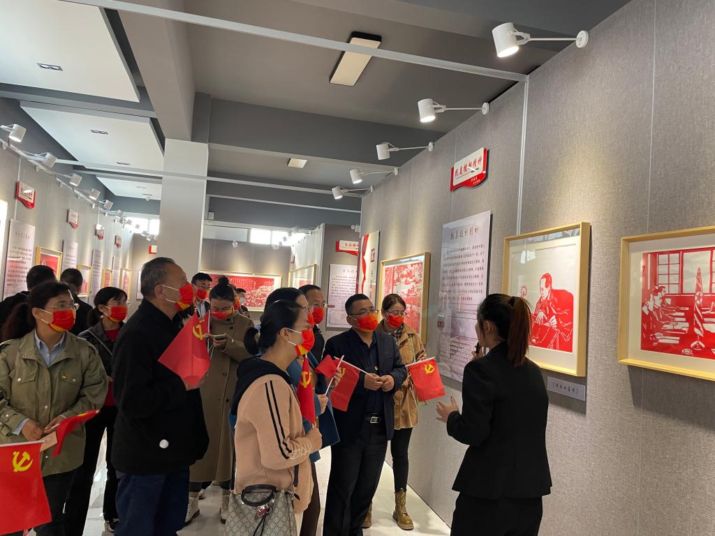 在《让历史照亮未来》红色剪纸文化展厅,党员们依次参观了救国篇、兴国篇、富国篇和强国篇四个展厅,深入学习中国共产党的百年奋进历程,聆听一代又一代中国共产党员艰苦奋斗、顽强拼搏的英雄事迹和十八大以来党和国家事业取得的伟大历史性成就,大家为中国共产党成立一百周年、中国特色社会主义进入新时代、实现第一个百年奋斗目标而感到无比自豪。