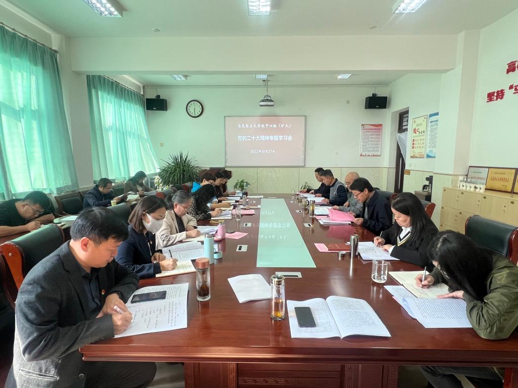马克思主义学院宣讲团成员马举魁教授从中国化时代化的马克思主义的历史视角,谈了学习党的二十大报告心得收获;宣讲团成员刘小红博士从读原文、重实际,深探究三个维度,谈了学习党的二十大精神的感悟体会。