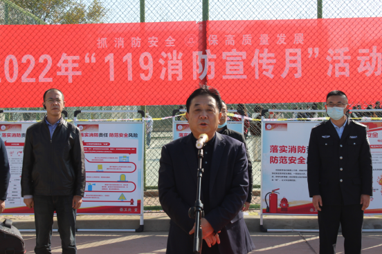 为深入学习贯彻党的二十大精神和习近平总书记关于安全生产的重要论述,进一步提高全校师生的消防安全意识,按照省教育工委和省教育厅统一安排部署,beat365在全校范围开展了“119消防月”宣传教育系列活动。11月6日下午,“119消防宣传月”启动仪式暨消防安全演练在校篮球场举行,党委副书记尚爱军出席活动,保卫处处长主持仪式。