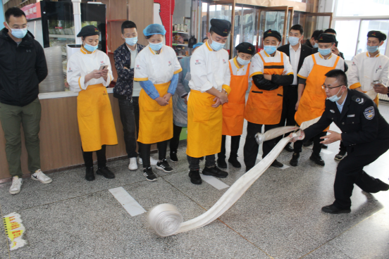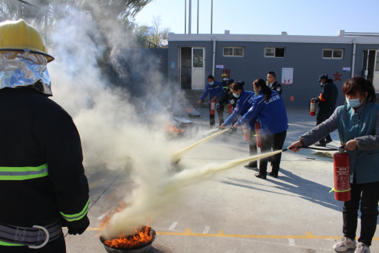 启动仪式后,保卫处组织餐厅、公寓、环卫、安保等一线工作人员进行了以“抓消防安全 保高质量发展”为主题的消防安全培训演练,通过现场讲解、实操灭火、消火栓使用、发放宣传手册、展板展示等多种形式对消防安全知识进行了科普培训。