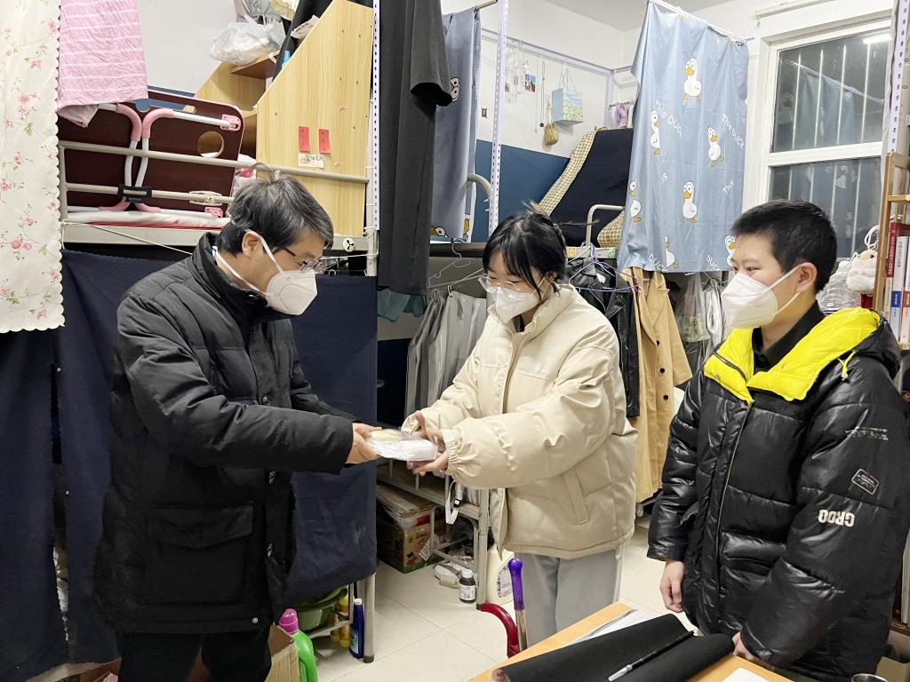 12月3日晚,张新柱走进公寓,看望慰问抗疫一线的专班师生和青年学子。他表示,大家在关键时刻挺身而出、牺牲小我融入大我的奉献精神值得大力表扬,也希望大家再接再厉,做到严防死守,严格温馨,时刻保持“战时”状态;勉励青年学子,在疫情之下也不忘学习,保持定力、报效祖国。