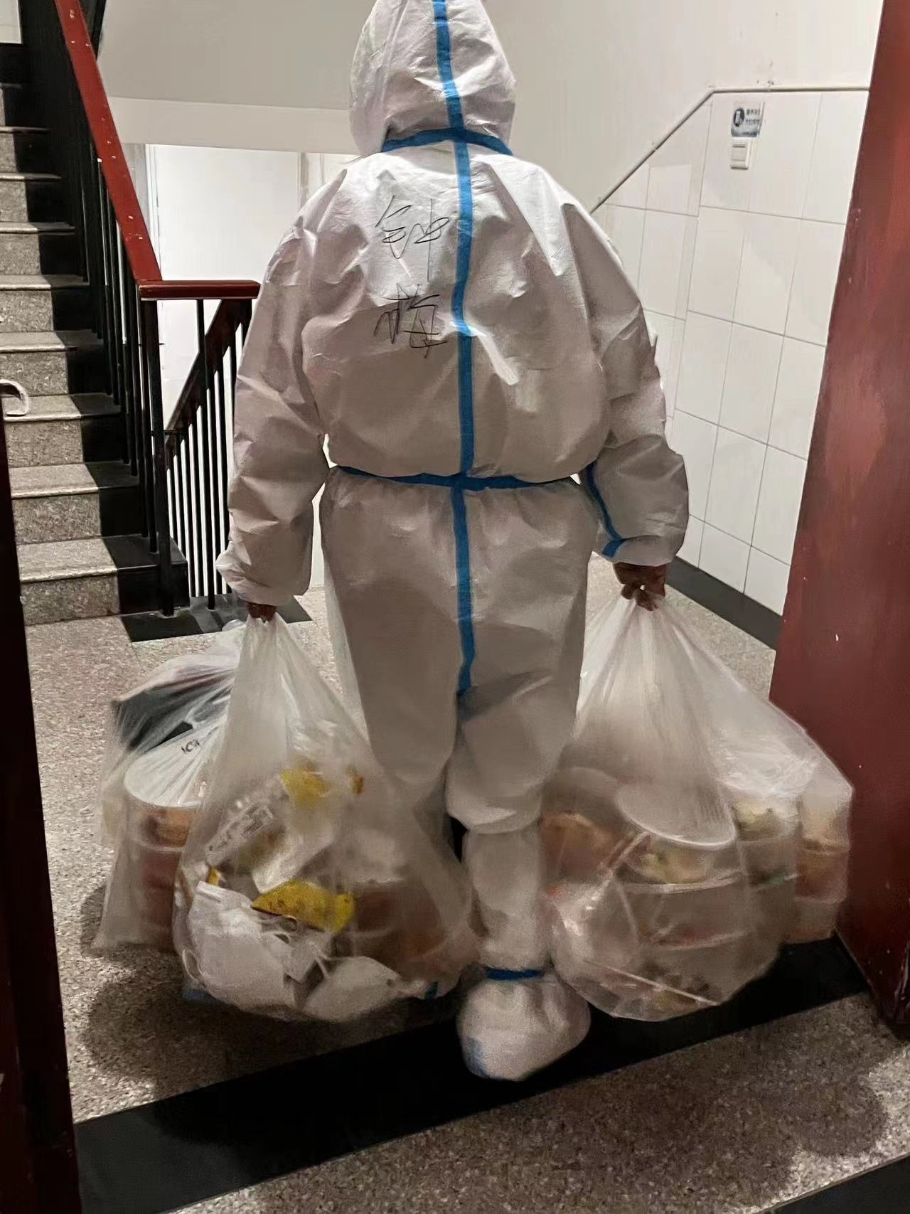 公寓专班的工作十分繁忙,每天要完成送饭、辅助做核酸、收垃圾、指挥错峰上厕所、打水以及心理疏导等诸多工作,事无巨细。大家在工作中不断摸索经验,通过给每个宿舍门上贴标签,标明人数、名字、回民等人员信息,实现了快速准确配餐。同时创新方式,用微信接龙的办法解决了同学们上厕所不碰面的问题,有效避免了交叉传染。
