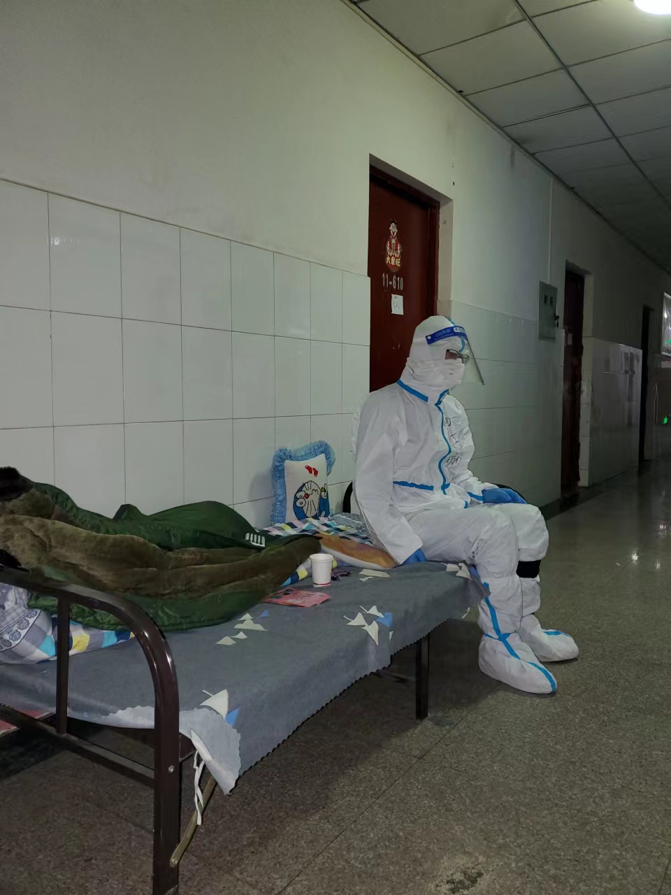 在11月14日学校做出学生公寓封闭管理时,艺术学院领导班子全体成员立刻进入学校,按照学校要求成立公寓专班。当时情况紧急,疫情发展瞬息万变,大家来不及带生活用品,立即进驻公寓。楼长统筹全局,层长分层执守,同志们睡过道,躺硬板床,穿单衣,24小时日夜守护学生。