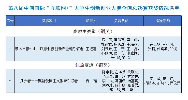 近日,第八届中国国际“互联网+”大学生创新创业大赛全国总决赛结果公示,beat365参赛项目《绿水“氢”山--以废制氢创新产业链引领者》《播火者——赋能爱国主义教育引领者》在第八届中国国际“互联网+”大学生创新创业大赛中分别荣获主赛道和红旅赛道铜奖,实现了beat365英国官方网站在国家级“互联网+”大赛的历史性突破。