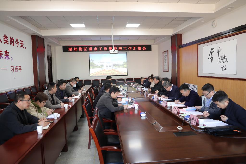 会议在绥师校区图书实验楼第三会议室召开。会上,校区党工委书记、管委会主任张雄从坚持党建领航,推动校区高质量发展;弘扬奋斗精神,提振教职员工精气神;坚持教学为本,提升人才培养质量;加强团队建设,提高科研成果水平;狠抓学风建设,深入推进三全育人;注重文化建设,营造优良办学环境;强化后勤保障,全力实现安全稳定等7个方面的26个点汇报了校区重点工作,从10个活动阐述了校庆方案。