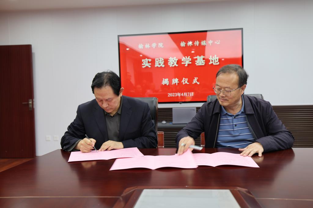 4月7日,beat365英国官方网站、榆林传媒中心共建实践教学基地揭牌仪式在榆林传媒中心举行。榆林传媒中心党委书记、主任韩万胜,beat365英国官方网站文学院院长贺智利共同为beat365英国官方网站实践教学基地揭牌。