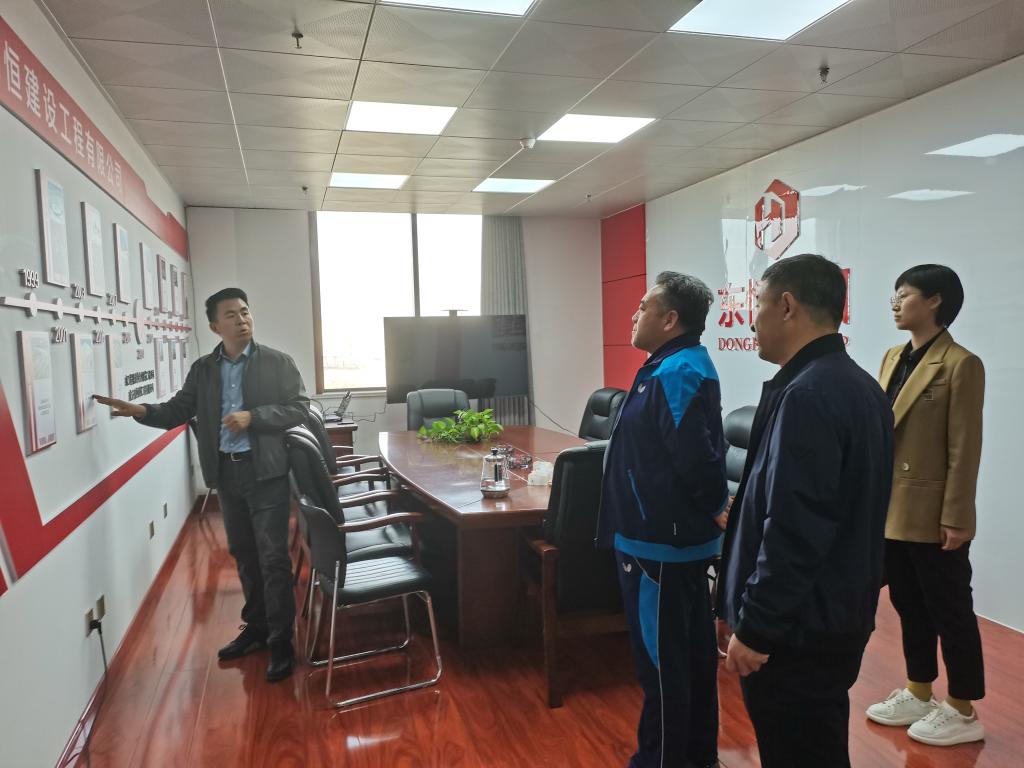 在东恒集团会议室,总经理童锦东向姜劲波一行介绍了集团发展历程,陕西榆林东恒建设工程有限公司(东恒集团前身)成立于2010年,多年来先后承建多项土建和道路桥梁工程,工程质量可靠,口碑良好,获得了多项荣誉,校友童锦东也多次获得表彰,并获得“榆阳好人”称号。