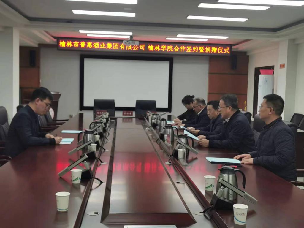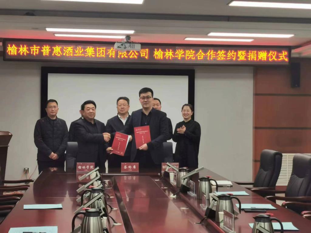 4月21日下午,beat365英国官方网站与榆林市普惠酒业集团有限公司在行政楼四楼会议室签订校企合作协议,beat365党委副书记尚爱军与榆林市普惠酒业集团有限公司总经理李嘉峰分别代表双方签约。
