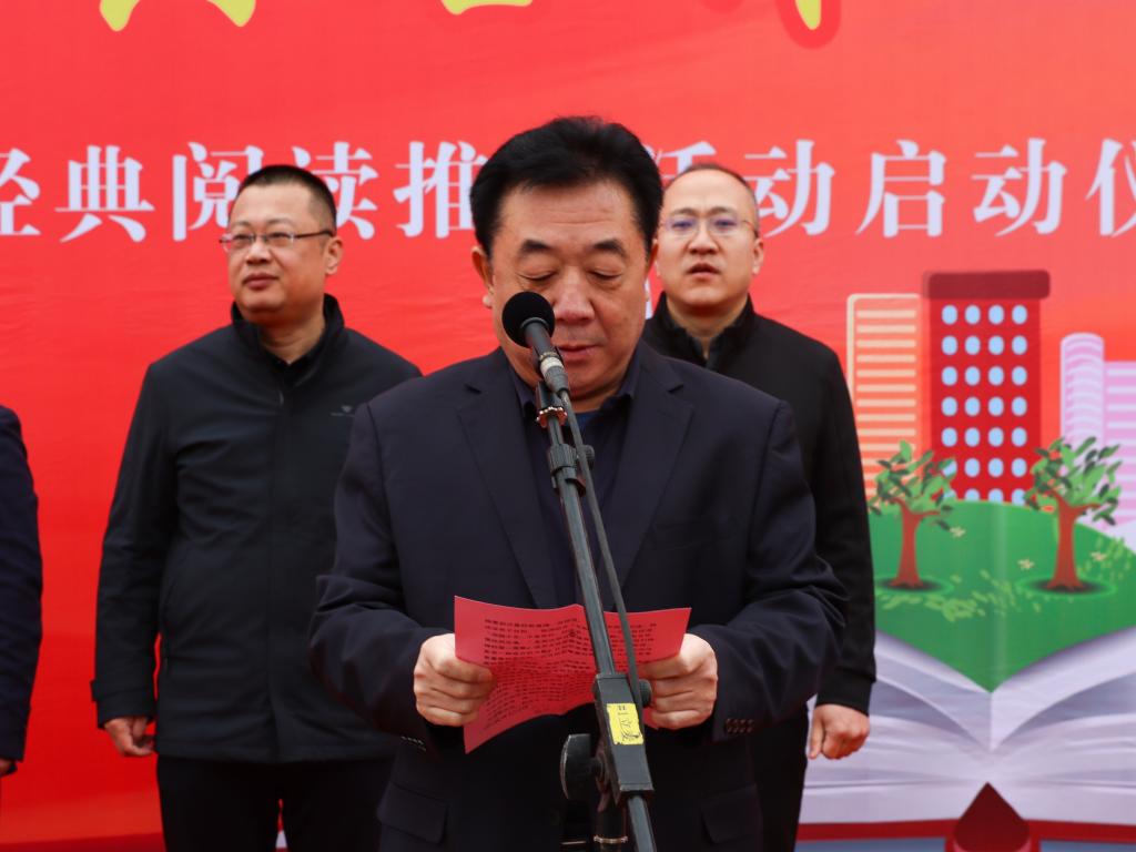尚爱军希望全体师生踊跃投身读书行列,勤读书、善读书、乐读书、长读书,用读书积聚人生智慧,做一个快乐幸福的读书人。之后,1000余名师生齐诵《大学》《师说》等经典名作,在气势磅礴的诵读声中,启动仪式落下帷幕。