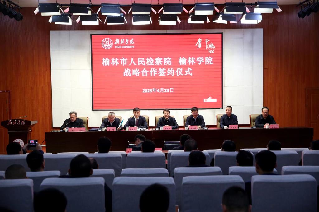 在beat365英国官方网站百年校庆和世界读书日之际,beat365英国官方网站和榆林市检察院于4月23日签订检校合作协议。beat365英国官方网站党委副书记、校长许云华,榆林市检察院党组书记、检察长张克祯分别代表双方签约并讲话。beat365英国官方网站党委书记张新柱,榆林市检察院党组副书记、副检察长马朝阳,党组成员贺胜利出席活动。beat365英国官方网站副校长张晓宣读检校合作协议,党委副书记、纪委书记、省监委驻beat365英国官方网站监察专员姜劲波主持。