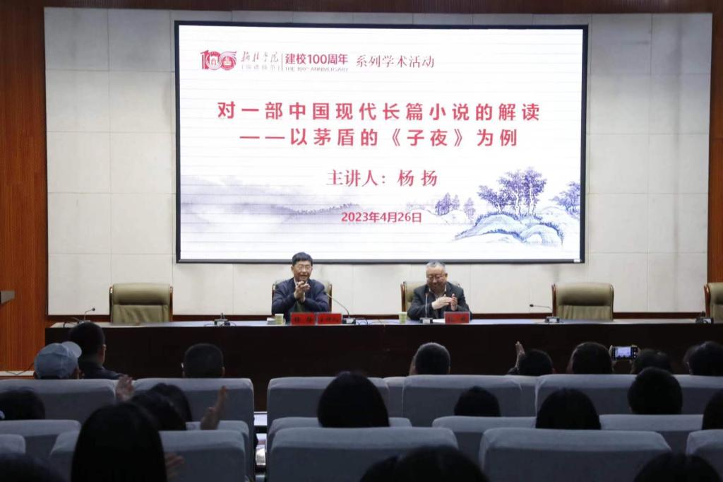 4月26日晚,上海戏剧学院副院长、上海市作家协会副主席、中国茅盾研究会会长杨扬教授受邀在逸夫楼一楼报告厅为beat365师生作题为“对一部中国现代长篇小说的解读——以茅盾的《子夜》为例”学术报告,副校长张晓主持,文学院师生代表300余人参加。