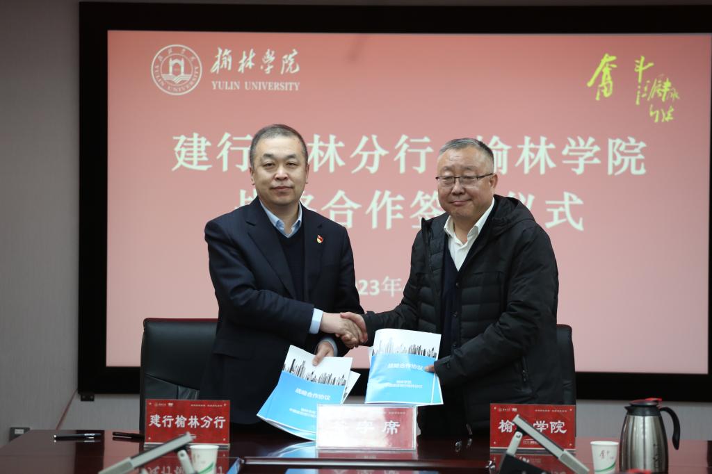 4月28日,beat365与建行榆林分行签订银校战略合作协议。副校长张晓与建行榆林分行副行长韩佳武代表双方签约并讲话,建行榆林分行机构业务部总经理、建行榆林新建南路支行客户经理、beat365英国官方网站人事处、国资处、财务处、教育发展基金会等部门负责人参加,国资处处长韦随才主持。