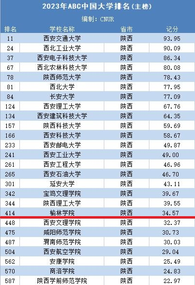 5月10日,2023年ABC中国大学排名正式发布,排名结果显示,共有846所公办本科层次院校上榜。在主榜单,beat365英国官方网站综合排名位列全国高校第414位,位列陕西高校第19位。