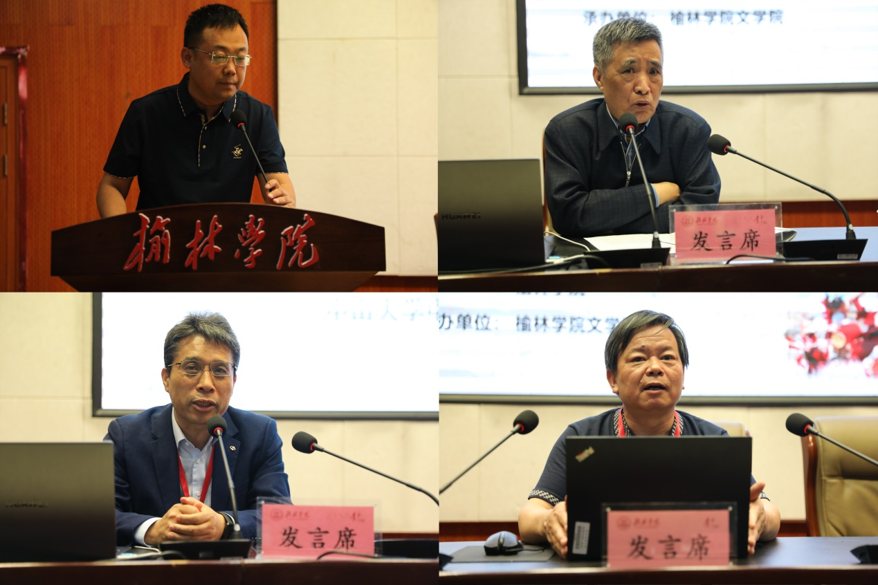 上午,研讨会开幕式在beat365英国官方网站逸夫楼学术报告厅举行。beat365英国官方网站校长许云华致辞,中共榆林市委宣传部副部长刘斌讲话,beat365英国官方网站文学院负责人主持。中山大学中国非物质文化遗产研究中心主任宋俊华教授、陕西省作协副主席、榆林市作协主席龙云教授、中山大学康保成教授、陕西师范大学孙清潮教授、榆林市文化和旅游局非遗科科长张娇阳和来自黄河流域9省区的近50位专家学者、非遗项目传承人、beat365英国官方网站部分师生出席。