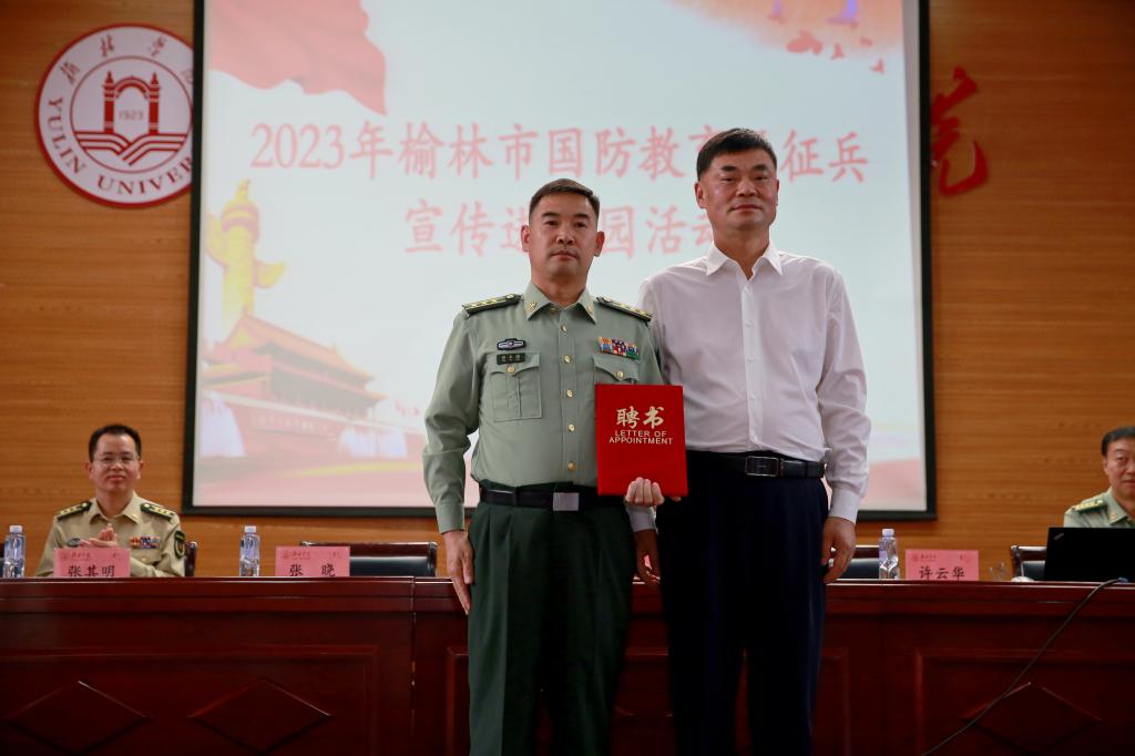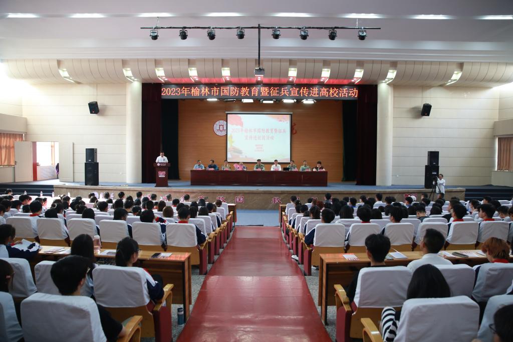 6月6日下午,榆林市国防教育暨征兵宣传进高校活动在beat365图书馆学术报告厅隆重举行。市征兵工作领导小组副组长、军分区大校司令员黄继,市征兵办公室主任、军分区副司令员王中锋,市征兵办公室副主任、军分区动员处上校处长张其明,榆阳区人武部上校政委田玉海,市教育局副局长韩玉红,市委宣传部有关人员;beat365英国官方网站校长许云华、副校长张晓出席,师生代表430余人参加。