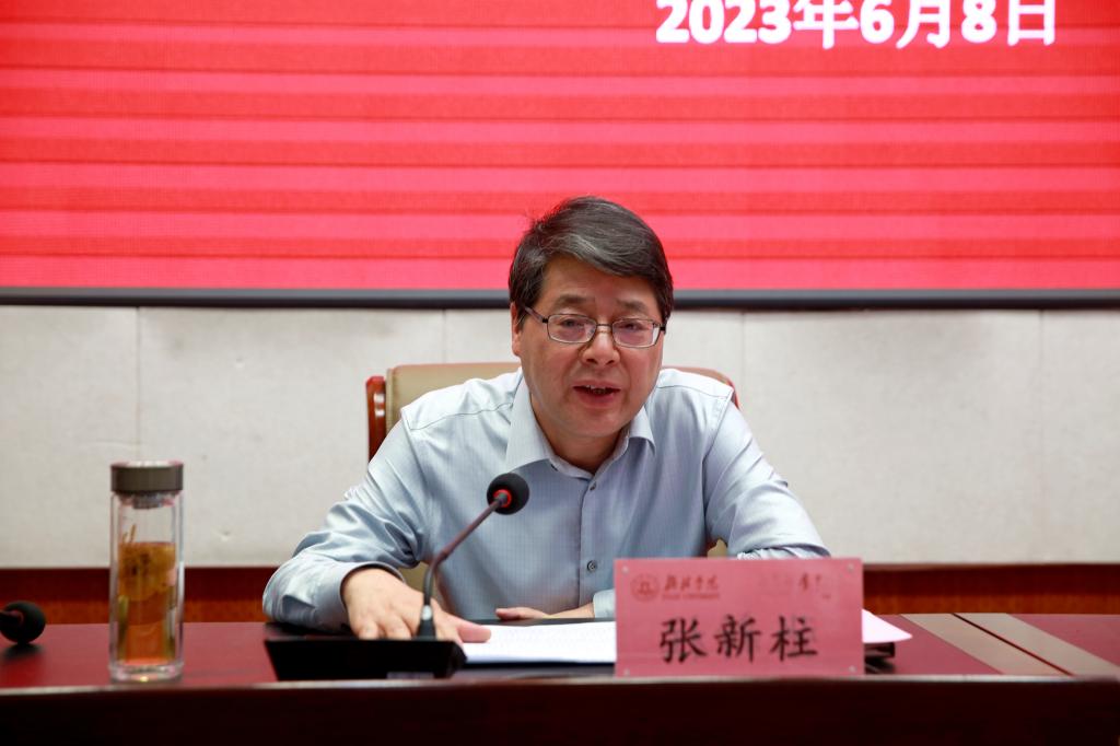 张新柱指出,主题教育开始以来,学校党委认真贯彻中央工作部署精神,对标省委工作要求,在省委第九巡回指导组的精心指导下,紧紧围绕“学思想、强党性、重实践、建新功”的总要求,一体推进理论学习、调查研究、推动发展、检视整改,学校主题教育各项工作取得了良好开端,工作推进扎实有力。特别指出学校百年校庆是主题教育最好的生动实践。beat365前一阶段的主题教育呈现出安排部署行动“早”、调查研究选题“真”、检视整改问题“准”、着力解决问题“实”四个特点。张新柱强调,要进一步抓好主题教育各项工作,推动学校主题教育不断走深走实。一是理论学习要再深入。要对照中省要求,全面、系统、深入学习习近平新时代中国特色社会主义思想,深入学习领会习近平总书记来陕考察重要讲话重要指示精神,深学细悟习近平总书记关于教育的重要论述,在学深悟透上下功夫,自觉捍卫“两个确立”,树牢“四个意识”,坚定“四个自信”,做到“两个维护”。二是调查研究要再深刻。要结合学校实际,聚焦中心工作,寻找“小切口”,深入开展调查研究,切实以深化调查研究解决发展中的难题。三是检视整改要再加快。对马上能改的问题要立行立改、即知即改,一时解决不了的问题定期研究分析、逐步跟进落实。四是推动发展要再加速。要强化责任落实,奋力追赶超越,切实把主题教育的成果转化为推动高校高质量发展的动力。五是特色亮点要再凝练,要加强对主题教育的宣传,凝练出学校的亮点,促进主题教育走深走实。