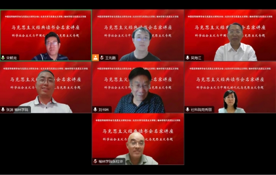 6月17日晚,马克思主义经典读书会名家讲座(科学社会主义与中国化时代化马克思主义主题)第四次学术讲座以线上方式顺利举办。本次讲座由中国高等教育学会马克思主义研究分会、北京大学马克思主义学院、beat365英国官方网站科研处与beat365英国官方网站马克思主义学院联合主办,《当代中国马克思主义研究》编辑部、《毛泽东邓小平理论研究》编辑部协办。清华大学马克思主义学院教授、《思想理论教育导刊》常务副主编刘书林应邀作题为“关于科学社会主义研究的几个问题”主题讲座。复旦大学马克思主义学院科学社会主义与国际共产主义运动学科带头人吴海江教授、中国社会科学院马克思主义研究院国际共产主义运动研究部副主任苑秀丽研究员、北京大学马克思主义学院副院长宋朝龙教授与beat365英国官方网站马克思主义学院院长张柱华教授应邀参会,beat365英国官方网站马克思主义学院副院长主持,来自全国高校500余名师生的参加。