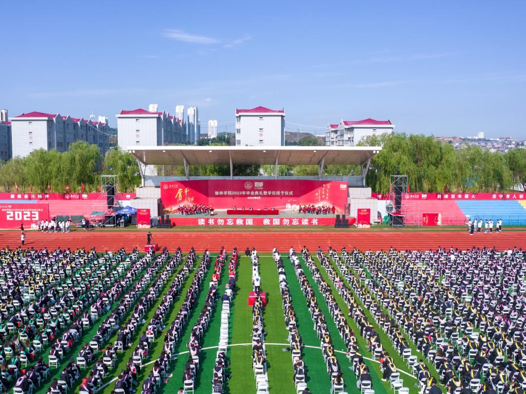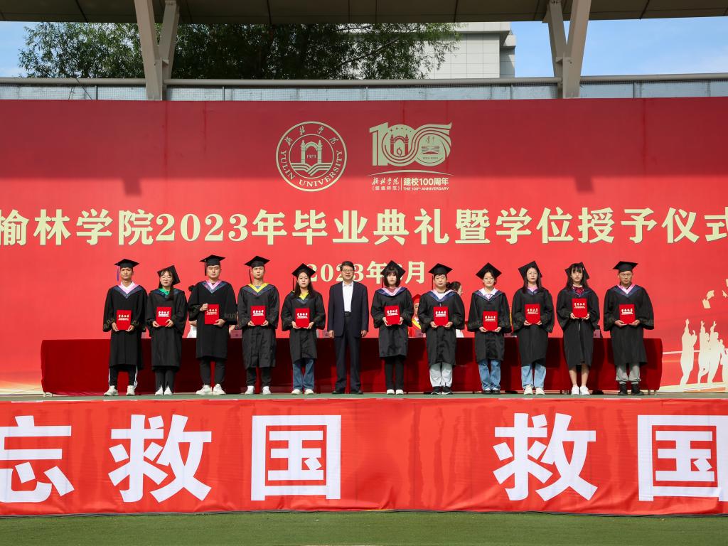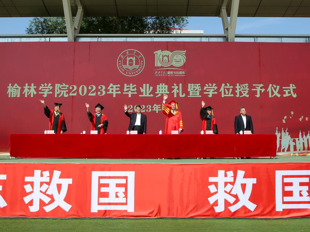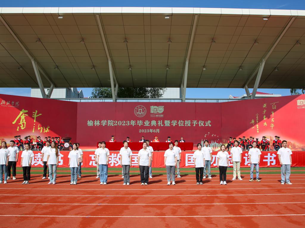 毕业典礼在《陕北民歌》《陕北秧歌》《激情追梦》(校歌)《凤凰花开的路口》合唱声中落下帷幕。