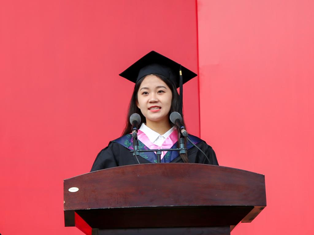 仪式开始前的暖场活动,在校生代表和毕业生倾情歌唱《在那东山顶上》《再见》《最美的太阳》《满天星辰不及你》,抒发对母校和师友的浓浓眷恋与依依不舍之情。