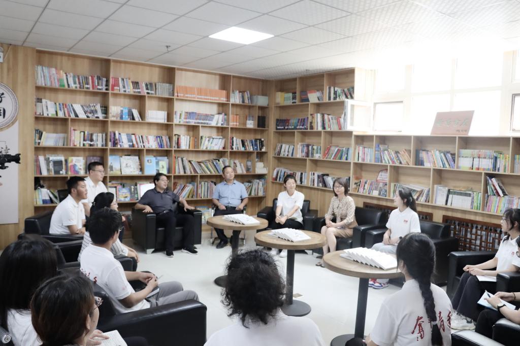 座谈会后,张新柱向三官会社区授“大学生社会实践基地”牌匾,向三下乡实践队的学生赠送路遥经典名作《人生》。