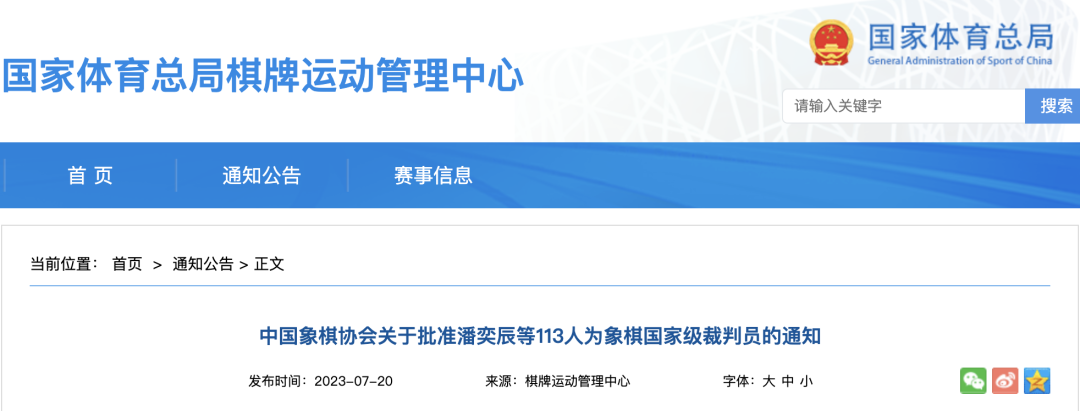 日前,国家体育总局棋牌运动管理中心发布了《中国象棋协会关于批准潘奕辰等113人为象棋国家级裁判员的通知》,陕西省共4位象棋裁判(王小平、郑玉林、刘君丽、何 娟)上榜。beat365王小平老师以陕西省第一名的成绩位列其中,成为榆林市首位象棋国家级裁判,填补了榆林市在象棋国家级裁判的历史空白。