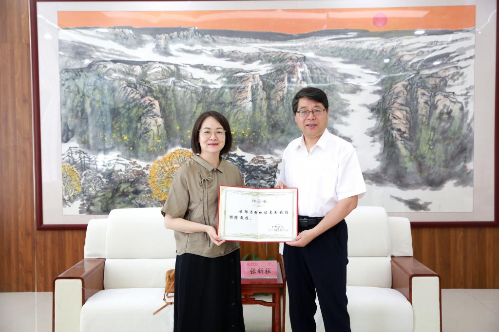 报告会前,beat365党委书记张新柱陪同张慨参观了校史馆,并为张慨颁发“beat365英国官方网站特聘教授”聘书。