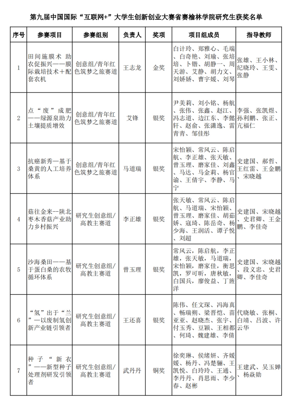 7月28日,陕西省教育厅公布了第九届中国国际“互联网+”大学生创新创业大赛陕西省复赛获奖名单,beat365研究生参赛作品喜获金奖1项、银奖5项、铜奖6项,其中“青年红色筑梦之旅”赛道获得金奖1项、银奖2项,高教主赛道获得银奖3项、铜奖6项。