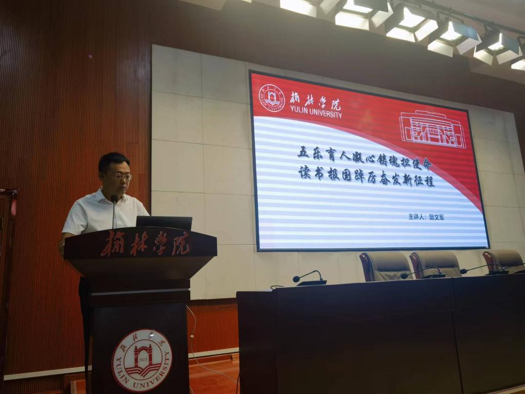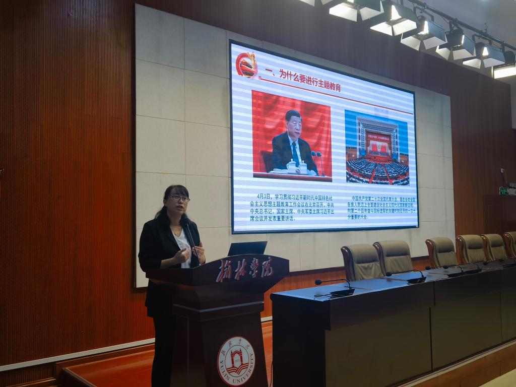 马克思主义学院副教授李飒飒首先“以主题教育夯实理想信念、用奋斗精神铸就青春底色”为主题,讲述了“为什么进行主题教育、主题教育学什么和主题教育怎么学”。文学院教授樊文军以“五乐育人凝心铸魂担使命、读书报国踔厉奋发新征程”为主题,讲述了习近平总书记关于“五育并举”的论述、“五乐育人”与“五育并举”的对应关系以及经典的魅力”。