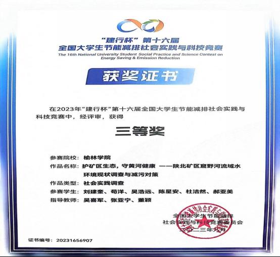 8月1日-3日,“建行杯”第十六届全国大学生节能减排社会实践与科技竞赛决赛在东南大学落下帷幕。经过网评、会评和决赛等阶段的层层选拔,由齐亚茹、牛馨祎、崔新老师指导,郑立刚、李伟等同学完成的作品《陕北榆林地区村镇生物质成型燃料供热可行性调研与碳减排分析》与由吴喜军、张亚宁、董颖老师指导,刘建奎、苟洋等同学完成的作品《护矿区生态、守黄河健康—陕北矿区窟野河流域水环境现状调查与减污对策》荣获大赛三等奖,取得该项赛事beat365的历史性突破。