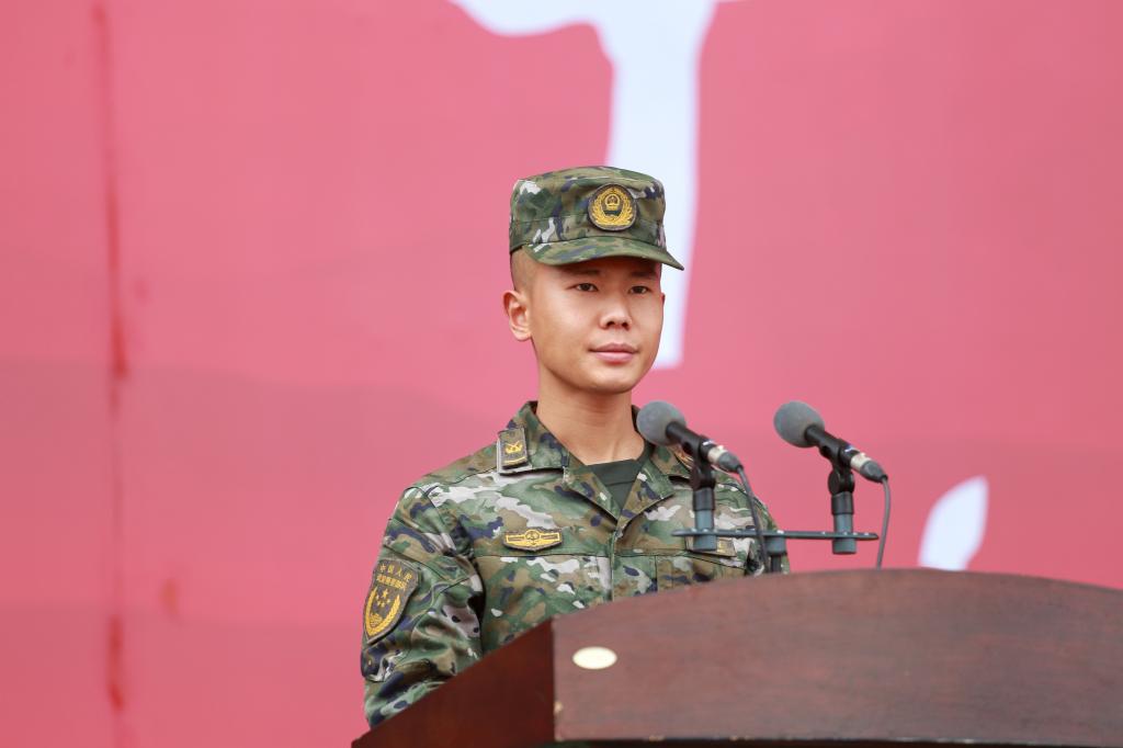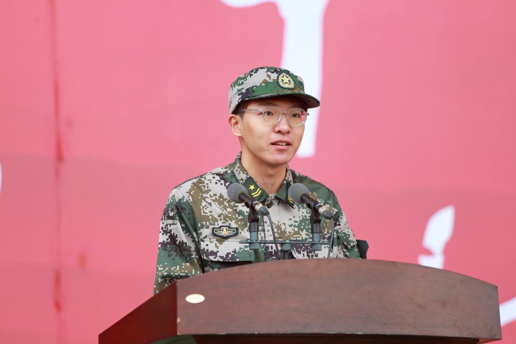 教官代表彭旺从严密组织、科学组训、尽职尽责,严格管理、科学指导、依法组训,端正态度、严守纪律、严守底线三方面作了军训动员表态。他希望2023级全体新生能学习国防知识、掌握军事技能、增强国防意识,迈开坚定步伐,以饱满的训练热情、斗志昂扬的姿态迎接踏入大学的第一次挑战。