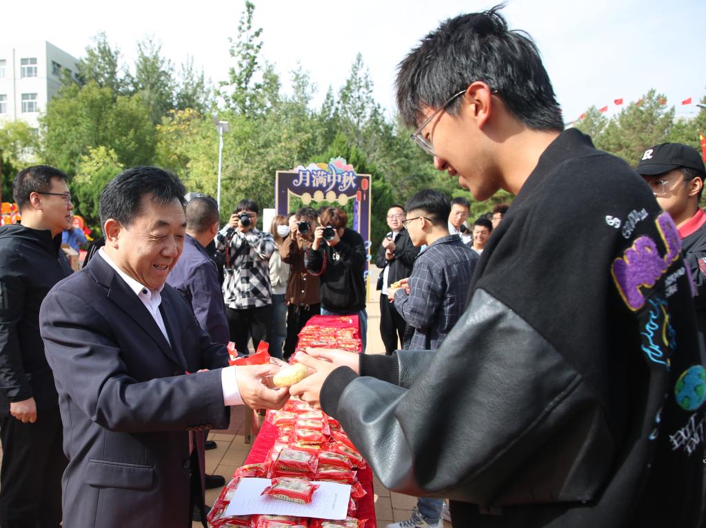 桂香万里月当空,中秋榆苑情意浓。为缓解留校学生思乡之情,传递学校温暖关怀,让假期留校学生在祥和愉悦的节日氛围中欢度佳节,9月29日上午,学校为4300余名留校学生每人准备了一份暖心的中秋月饼。校党委副书记尚爱军出席活动,为同学们发放月饼,送上节日的祝福与问候。