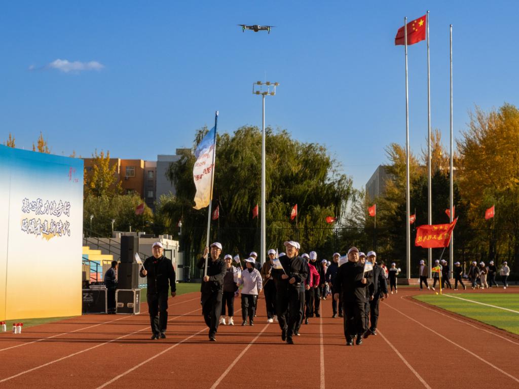 秋风送爽,果实累累。为进一步深化巩固学习贯彻习近平新时代中国特色社会主义思想主题教育成果,践行习近平文化思想,贯彻党的教育方针,积极在师生中全面推进“五乐育人”,并响应全民健身号召,展现学校教职工爱岗敬业、昂扬向上的精神风貌,营造“健康生活、快乐工作”氛围,beat365于10月19日下午在校体育场隆重举行了“凝心聚力健步行,砥砺奋进新时代”教职工健步走活动启动仪式。副校长康伟,党委副书记、纪委书记姜劲波,副校长闫龙出席启动仪式,各分工会近400余名教职工积极踊跃参加,启动仪式由校工会主席主持。