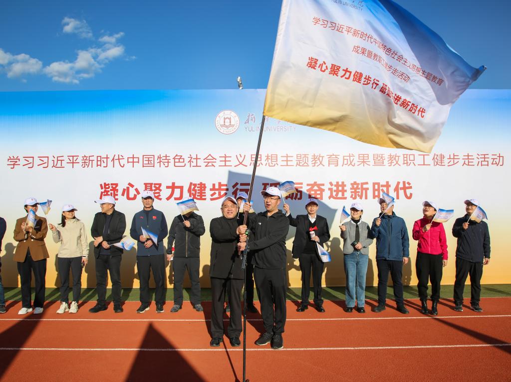 启动仪式上,姜劲波为教师代表授旗,康伟宣布健步走活动正式启动。