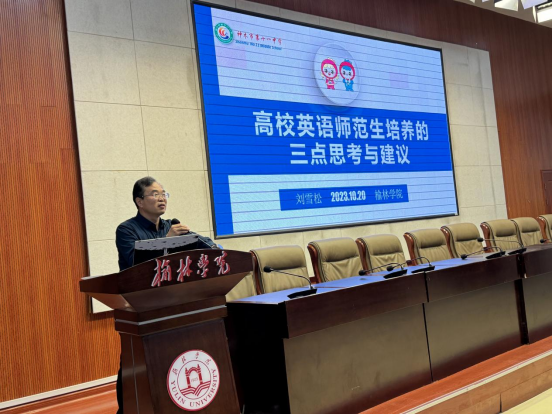 刘雪松作了题为“高校英语师范生培养的三点思考与建议”的报告,建议地方高校加强与中小学深度合作,在中小学建立广泛的实习基地。地方高校教师应与中小学教师共建课程、共研项目、共报成果,构建大中小教师发展共同体,推动区域高等教育和基础教育共同发展;武晓燕作了题为“平凡之路上的成长、坚守、传承”的报告,分享了自己从“民师”到“名师”和“明师”三个阶段的专业成长经历,从坚守教育热情、阶段目标和素养锤炼三个方面,分享了自身专业成长过程中的关键要素;尉莉作了题为“匠心筑梦,不负韶华:聚焦思维课堂,促进深度学习”的报告,分享了如何在高中英语阅读教学中加强学生高阶思维训练,提高学生学习语言的兴趣和自主思考的能力,提升学生的英语学科核心素养。