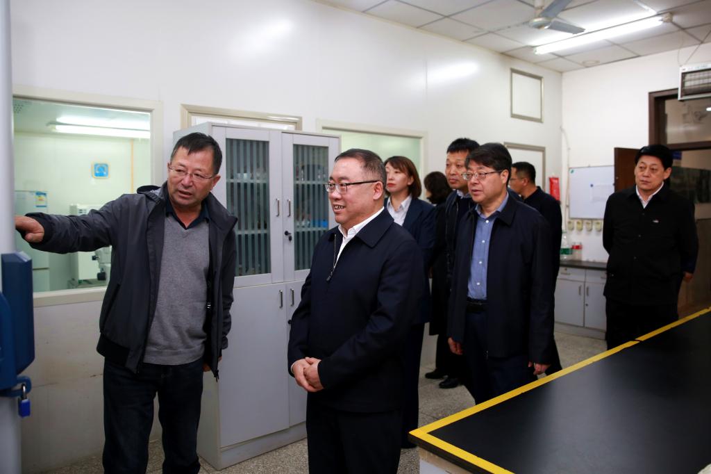 在校史馆,王国忠一行对学校百年发展取得的辉煌成就表示赞叹。在陕西省低变质煤重点实验室,王国忠认真听取了实验室负责人汇报。他指出,重点实验室既要潜心基础研究更要探索基础应用研究,在成果产业化上下足功夫,要将创新链、产业链、人才链和资金链深度融合。在陕北绒山羊工程技术研究中心,王国忠对屈雷教授20年潜心研究绒山羊表示欣赏,他鼓励屈雷教授继续在羊产业上开展研究,为榆林羊产业高质量发展提供技术支撑。