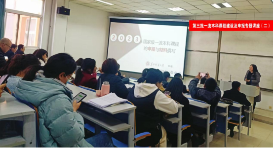 本专题讲座是继10月23日又一次专题讲座。两次专题讲座切合课程建设需求,恰逢其时,具有很强的针对性、指导性和实效性,真正让老师们感受到所讲即所需,增强了大家针对一流课程建设与申报的信心与勇气。