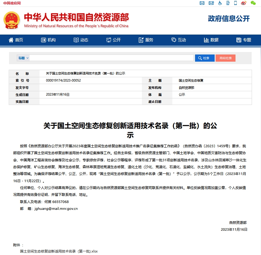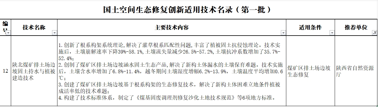 本次技术申报是按照《自然资源部办公厅关于开展2023年度国土空间生态修复创新适用技术推广名录征集推荐工作的函》(自然资办函〔2023〕1459号)要求,经自主申报,省级自然资源主管部门推荐及社会公示,专家综合评荐,社会公示等程序,评荐形成了第一批31项创新适用技术名录,涉及山水林田湖草沙一体化生态保护修复、矿山生态修复、海洋生态修复、森林草原湿地荒漠生态修复、退化土地(沙化、荒漠化、石漠化、盐碱化、水土流失)生态修复治理、土地整治等领域。上述成绩的取得是beat365追赶超越新机制大力推行的结果,也是学校扎根榆林、研究榆林、服务榆林、贡献榆林能力提升的真实写照。