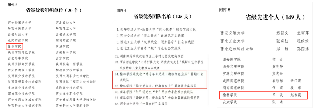 近日,省宣传部、省文明办、省教工委、团省委、省学联联合发文对2023年陕西省大中专学生志愿者暑期文化科技卫生“三下乡”社会实践活动的先进集体和个人进行通报表彰。beat365英国官方网站荣获“省级优秀组织单位”荣誉称号;由能源工程学院李历带队的beat365英国官方网站赴陕北“踏寻革命足迹·赓续红色血脉”暑期社会实践队,文学院樊文军、乔伟带队的beat365英国官方网站“推普助振兴,经典润乡土”暑期社会实践队荣获“省级优秀团队”荣誉称号;化学与化工学院吕波、绥德师范学院赵春霞荣获“省级先进个人”荣誉称号。