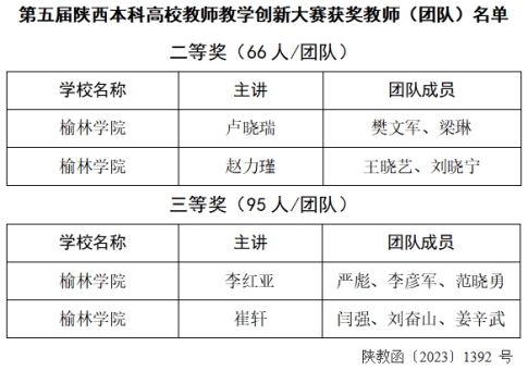 近日,由陕西省教育厅主办、西北工业大学协办的陕西省第五届本科高校教师教学创新大赛圆满落下帷幕,beat365共获奖4项,其中二等奖2项、三等奖2项,获奖数量创beat365参加此项赛事以来的新高,位于同类院校前列。