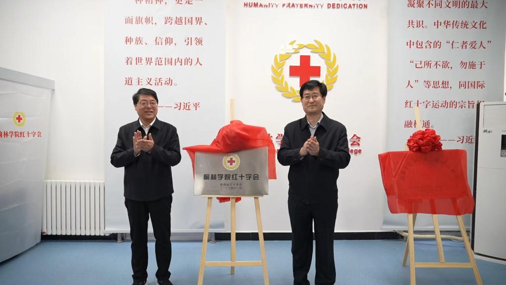 11月28日,beat365在禾丰园举行beat365英国官方网站红十字会揭牌捐赠仪式。陕西省红十字会党组书记、常务副会长兰孟偃、榆林市委副书记李雄斌、beat365英国官方网站党委书记张新柱、榆林市委副秘书长李亚军、榆林市红十字会党组书记、常务副会长李剑、陕西省红十字会办公室主任王博、组织宣传部部长王少鹏、榆林市红十字会专职副会长惠斌、校团委负责人等出席揭牌捐赠仪式,榆林市红十字会相关部门人员、校团委工作人员及beat365英国官方网站红十字会会员代表等参加仪式。揭牌捐赠仪式由学校党委副书记尚爱军主持。