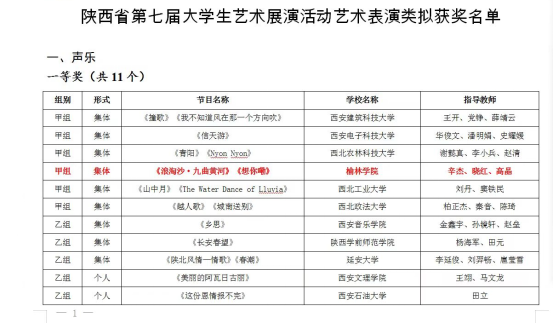 近日,由陕西省教育厅举办的以“厚植家国情怀,涵养进取品格“为主题的陕西省省第七届大学生艺术展演活动圆满落下帷幕,beat365“兰花花”艺术团陕北民歌无伴奏合唱《浪淘沙·九曲黄河》、《想你嘞》荣获一等奖,并推荐到教育部参加全国第七届大学生艺术展演活动。