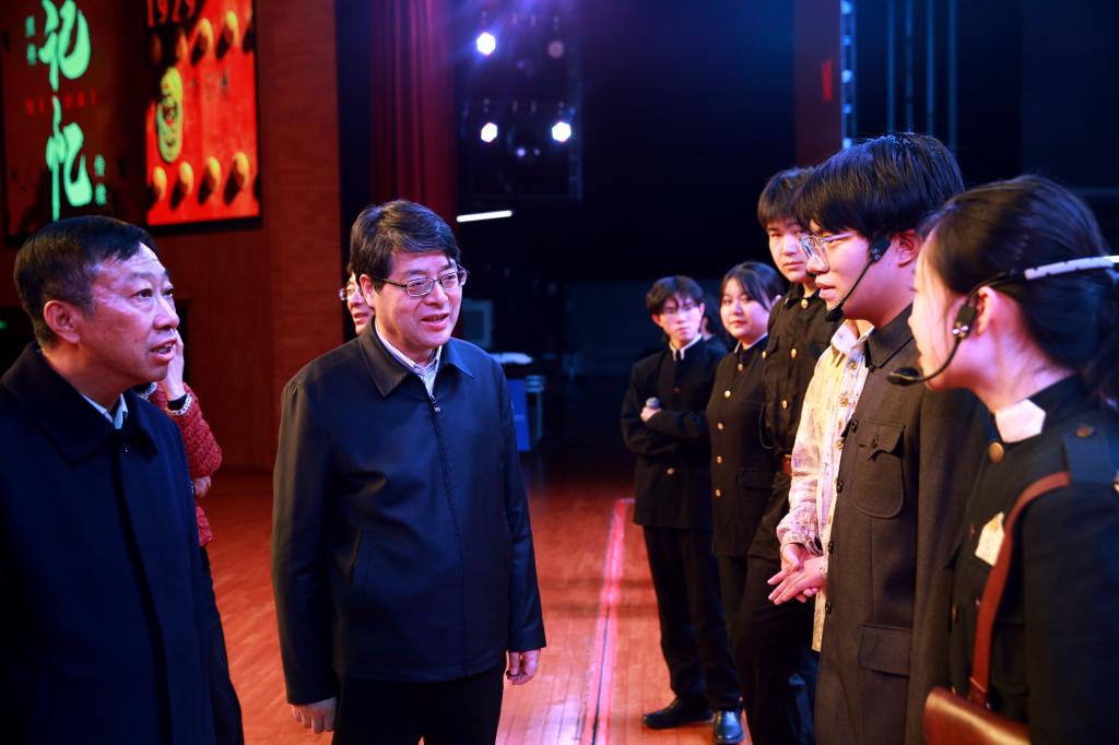 为深入贯彻习近平总书记关于教育和文艺工作的重要论述,全面加强和改进新时代学校美育工作,11月29日--30日,beat365原创红色话剧《李子洲在1929》演出活动在神木职业技术学院大剧院隆重举行。榆林市委常委、神木市委书记杨成林;beat365党委书记张新柱、副校长闫龙;神木职业技术学院党委书记、校长艾国,党委副书记李长春,副校长李建法,副校长郭亚芳出席,神木职业技术学院师生及部分机关党员干部观看了演出。