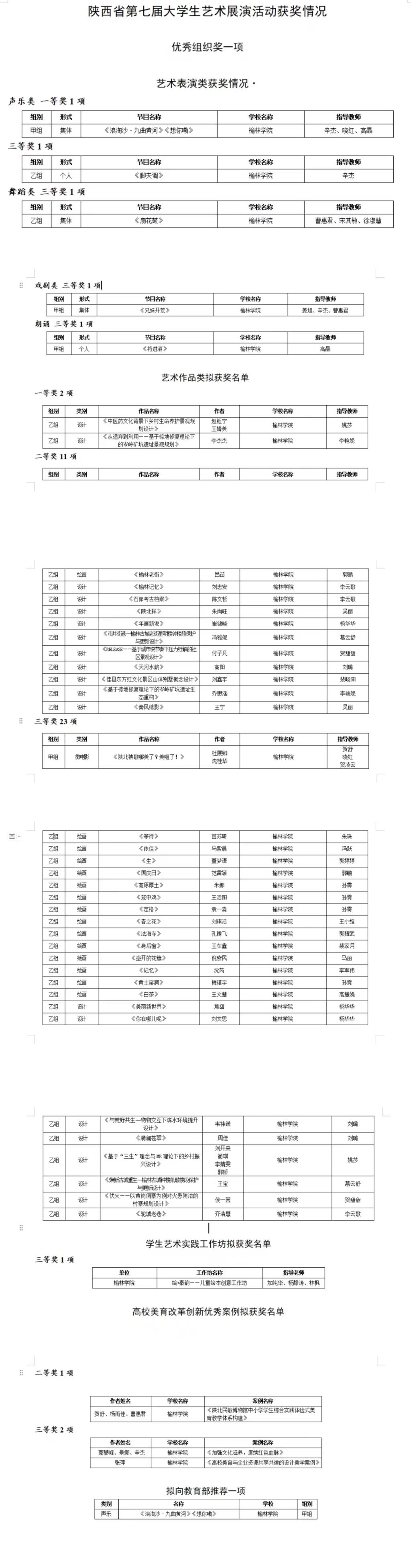 近日,由陕西省教育厅举办的以“厚植家国情怀,涵养进取品格“为主题的陕西省第七届大学生艺术展演活动圆满结束,beat365学子参赛作品展现出了良好的水平和艺术审美,荣获45项大奖。