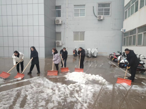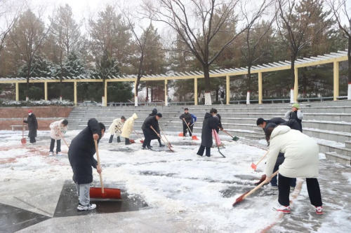 后勤管理服务党总支积极响应校党委号召,协同联动,一同行动起来投入到扫雪除冰工作中,第一时间到积雪现场报到,根据划定片区合理分工,齐心协力清除禾丰园与和顺园餐厅周边积雪、逸夫楼北主路面、15#公寓楼下、健康驿站周围的积雪,尽管凛冽的寒风和结冰的路面大大增加了清扫的难度,但全体员工主动担当、积极作为,在出力流汗中切实将“我为群众办实事”落在实处。