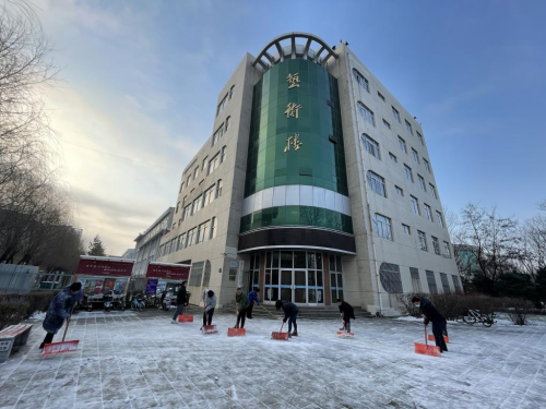 校园清雪除冰工作从早晨开始,艺术学院师生积极响应校党委与院系党总支号召,纷纷加入到清雪除冰的行列中。在清雪除冰过程中,志愿者们分配了除雪工具,按照学校划分责任区,对艺术楼周边及西家属区9#-12#楼周边区域进行清扫;有的志愿者用铁铲铲雪,有的用扫帚扫雪,每一位志愿者都兢兢业业,积极投入到清雪除冰工作中。