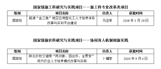 4.教学改革全面推进。以本科教育教学改革项目为抓手,开展思想政治理论课、大学英语、大学语文、大学体育等公共基础课及选修课程教学改革,引入校外优质网络课程资源。五年来,在国家智慧教育平台上线10门课程,教育部“新工科”“新农科”项目各1项,省级新文科2项、新工科2项,获批省级现代农业产业学院1个、省级一流专业12个、一流课程17门,省级教学改革项目10项(其中重点攻关2项、重点3项),获陕西省教学成果特等奖1项、一等奖1项、二等奖4项,教育部产教协同育人项目35项(2023年申报51项),2部教材省级优秀教材二等奖。